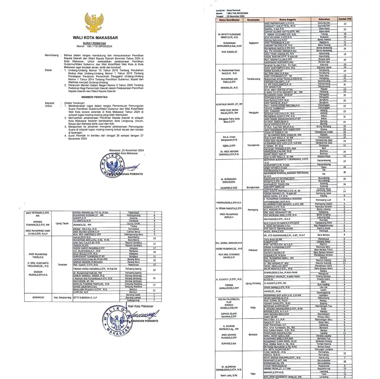 Asal diketahui, dalam Surat perintah Walikota Makassar, Dannu Pomanto, memberi perintah kepada sejumlah Pegawai Pemerintah kota Makassar yang berbunyi melakasanakan tugas dalam rangka pemantauan pemungutan suara Gubernur dan Wakil Gubernur, Walikota dan Wakil Walikota Makassar secara serentak di kota Makassar tahun 2024 di Wilayah Tugas Masing masing yang talah ditentukan.