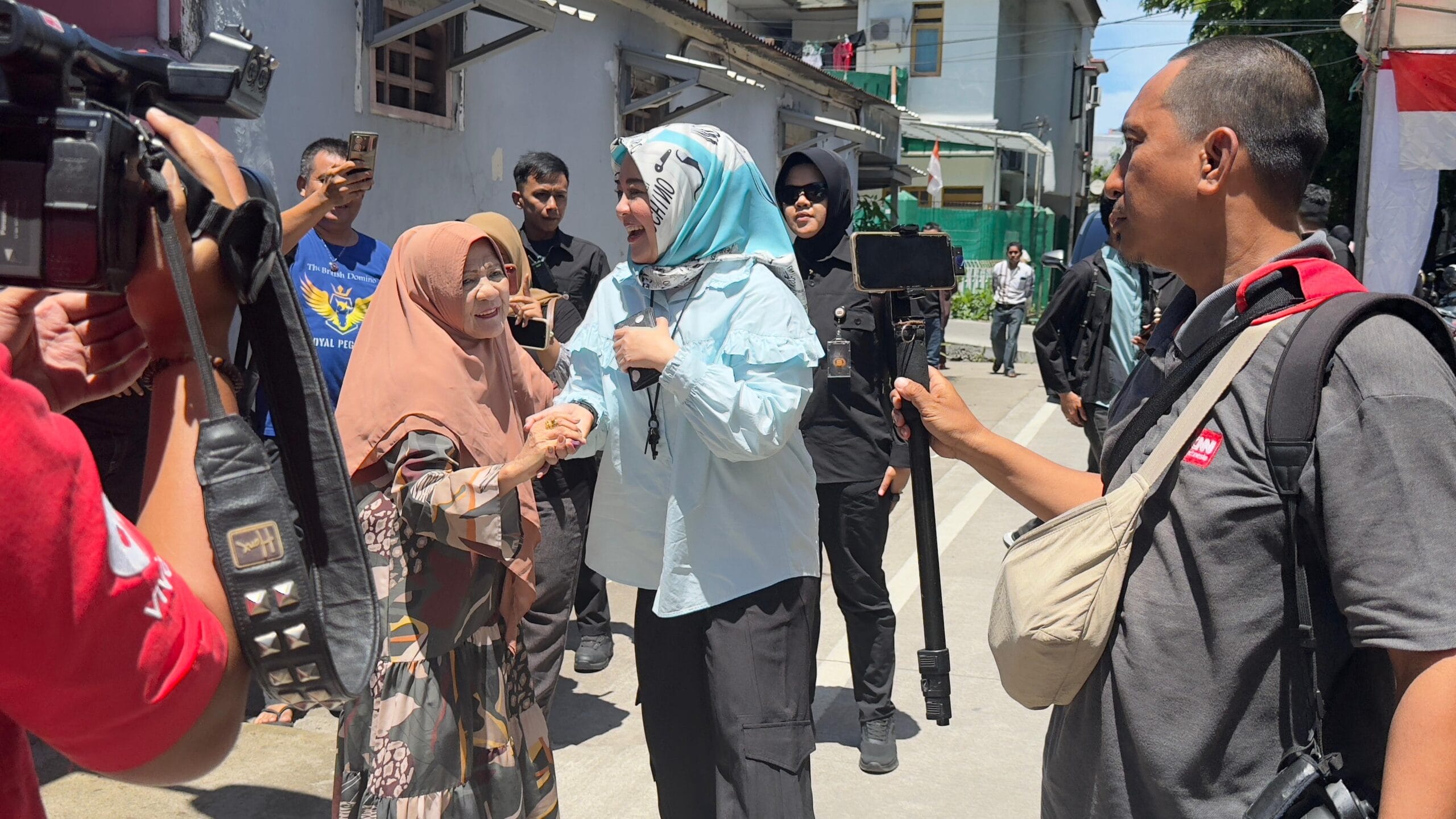 Saat tiba di TPS, Fatma lalu mendaftar ke petugas Kelompok Penyelenggara Pemungutan Suara (KPPS) TPS 007. Sebelum memasuki TPS, perempuan kelahiran Parepare 9 Mei 1980 itu terus melebarkan senyum.