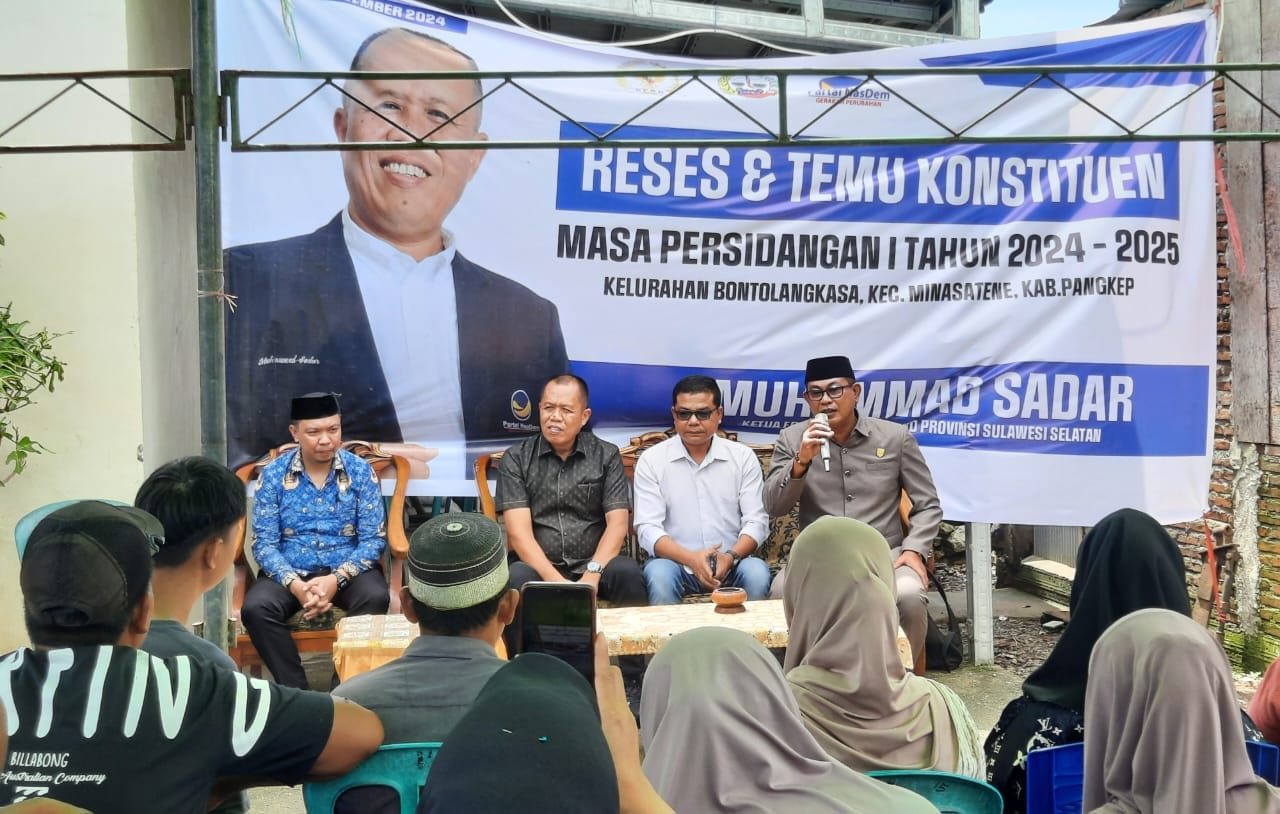 Notuladaily.com, Pangkep – Ketua Fraksi NasDem DPRD Sulawesi Selatan, Muhammad Sadar menggelar reses masa sidang pertama Tahun Anggaran 2024-2025.